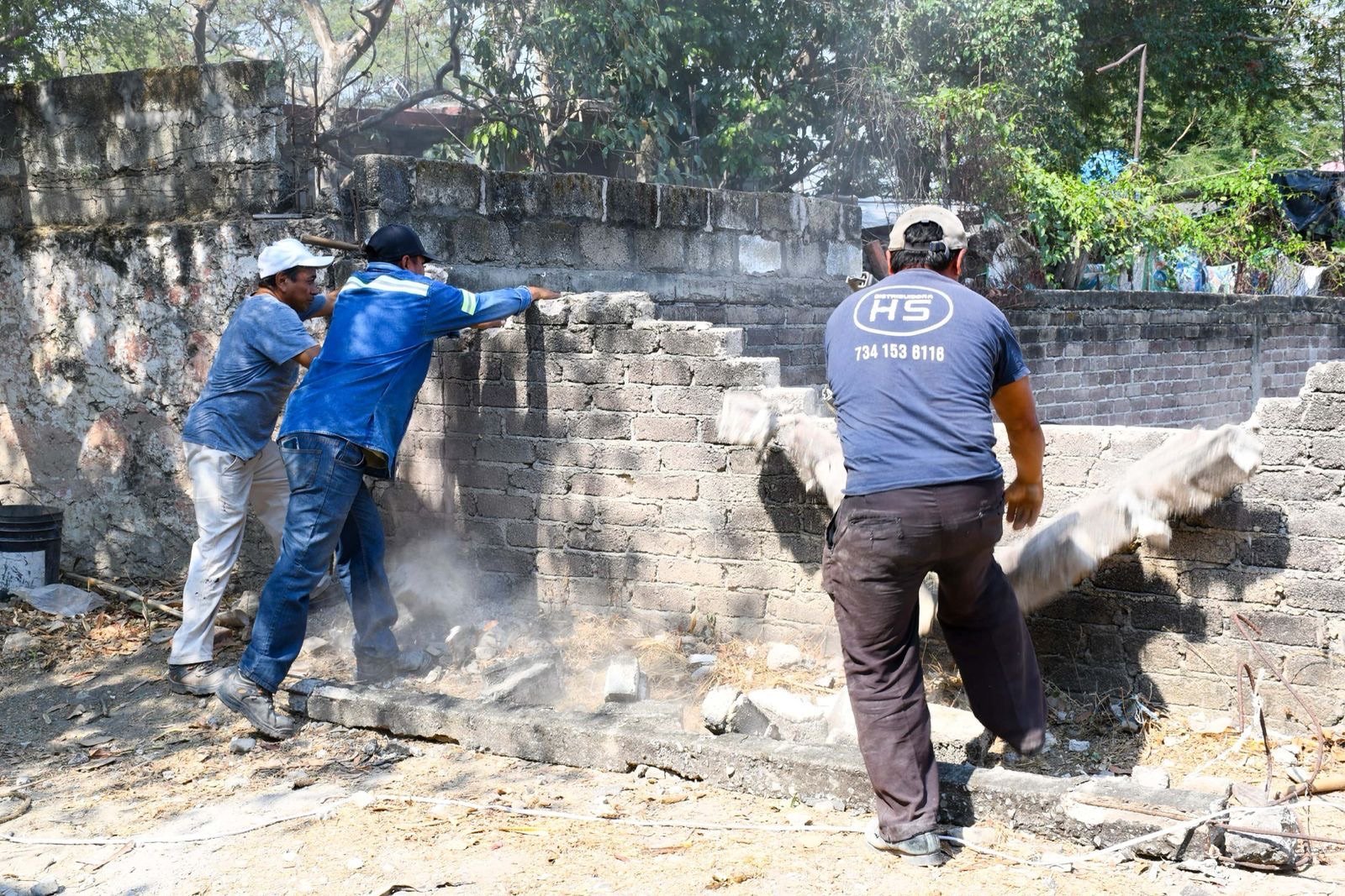 ***Se inició el retiro de una barda perimetral que ponía en riesgo la labor de los peritos en la fosa•