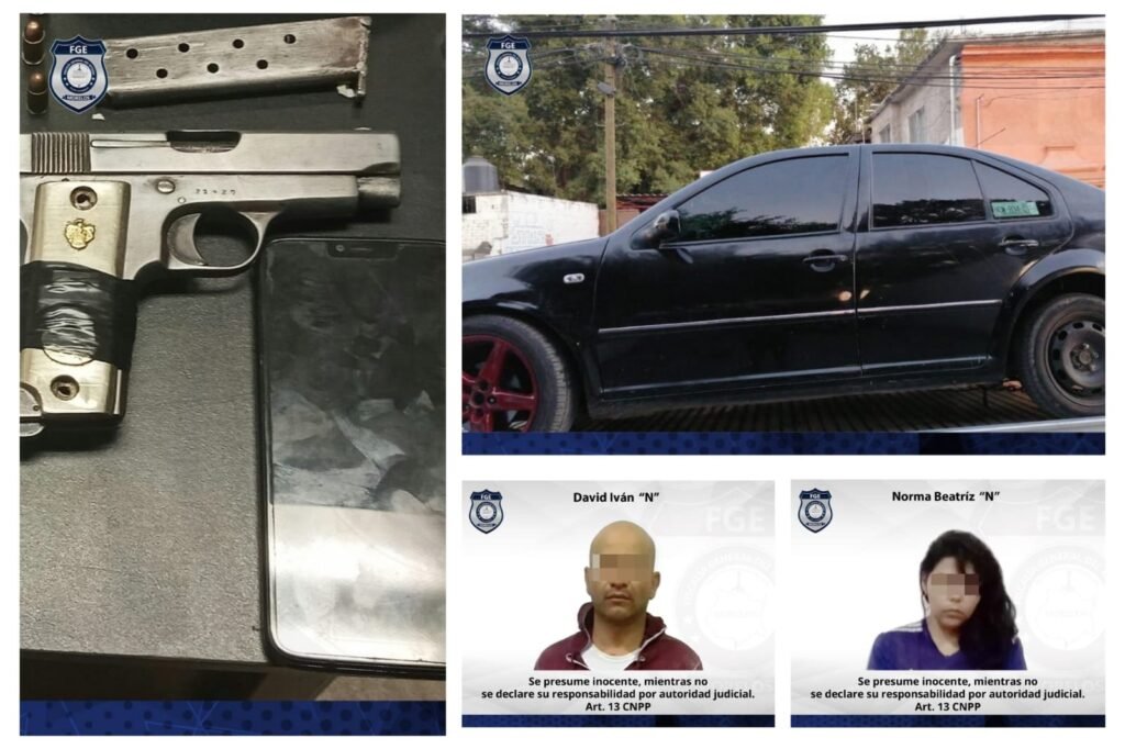 Ante la llegada de elementos de apoyo, Norma Beatriz “N” y “El Pelón” se entregaron, asegurándoles el arma tipo escuadra calibre 32, abastecida con cinco cartuchos, el coche y 106 dosis de la droga conocida como cristal, repartidas en una “mariconera” y en un estuche para lentes.