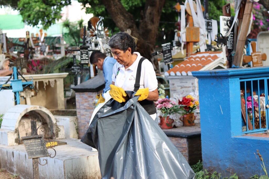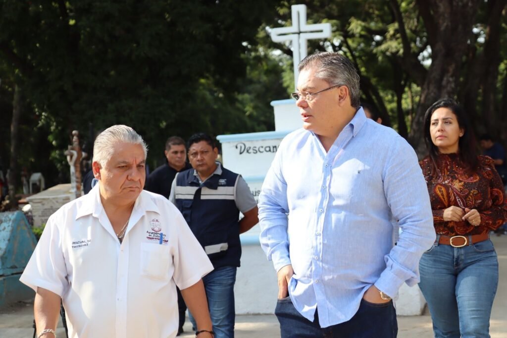 El alcalde Rafael Reyes realizó, la mañana de este martes, un recorrido por el panteón de la colonia Centro para supervisar los trabajos de limpieza y descacharrización que se llevan a cabo en los nueve cementerios del municipio, con el objetivo de tenerlos en las mejores condiciones para el próximo Día de Muertos (1 y 2 de noviembre).