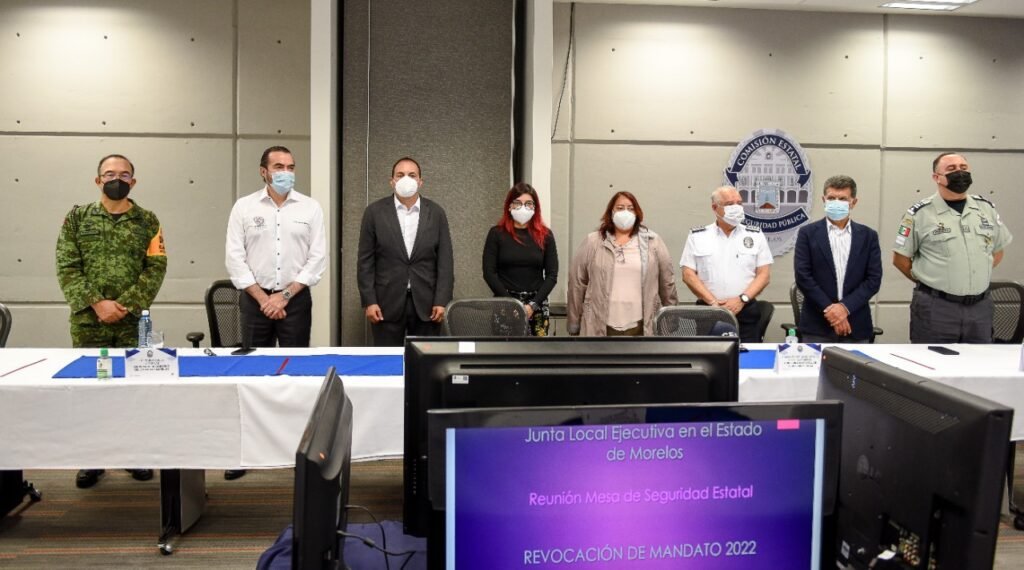 Integrantes de la Mesa de Coordinación Estatal para la Construcción de la Paz, encabezados por el Jefe del Ejecutivo, se reunieron con la titular del Instituto Nacional Electoral (INE) Morelos, con el fin de acordar estrategias de seguridad para realizar la Jornada de Revocación de Mandato, el próximo 10 de abril.