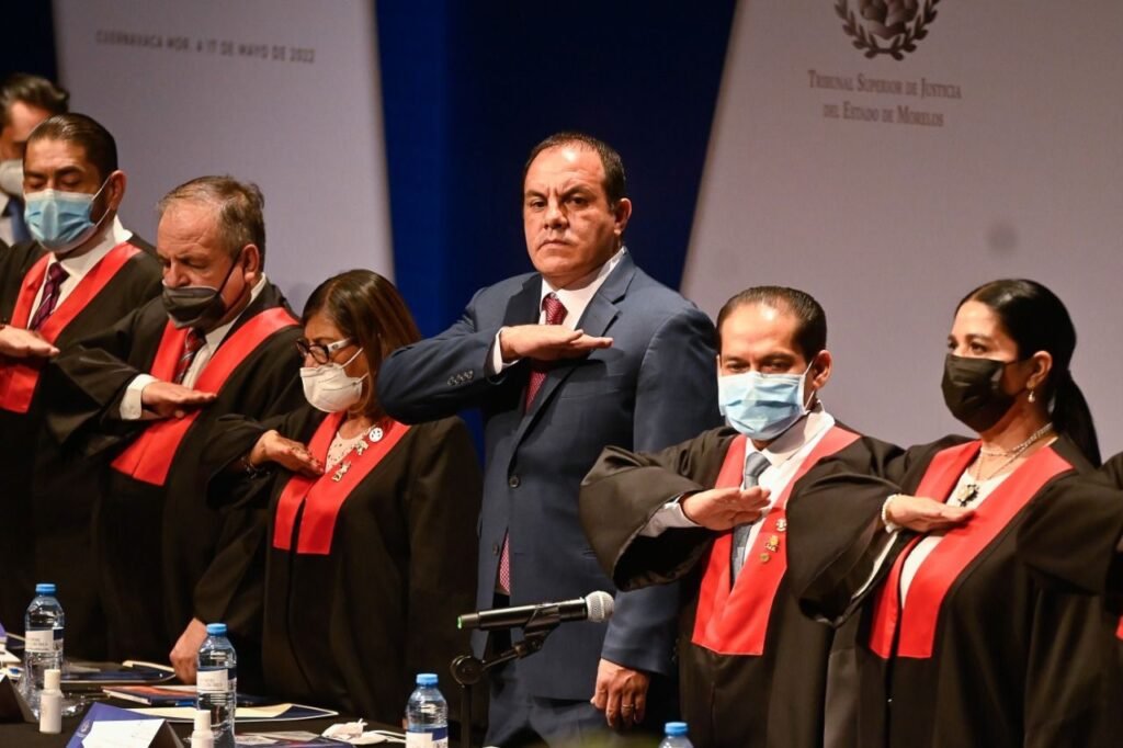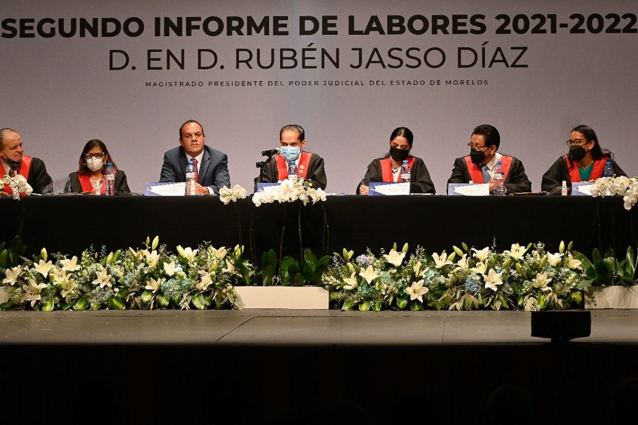 El gobernador Cuauhtémoc Blanco Bravo acudió a la presentación del informe de labores 2021-2022 del magistrado presidente del Tribunal Superior de Justicia (TSJ), Rubén Jasso Díaz.