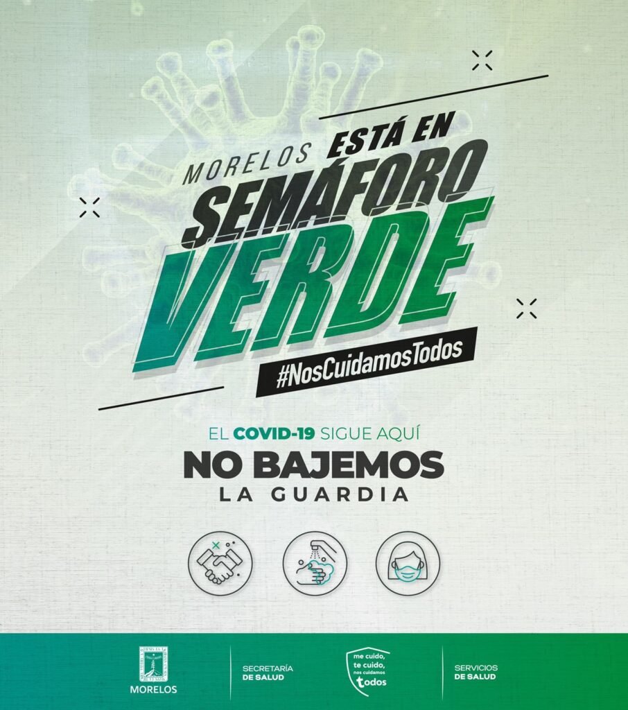 Al destacar que Morelos está en semáforo de riesgo epidémico color verde, la dependencia estatal enfatizó que la emergencia sanitaria sigue activa, por lo que en cada actividad que se realice, es necesario portar el Escudo de la Salud.