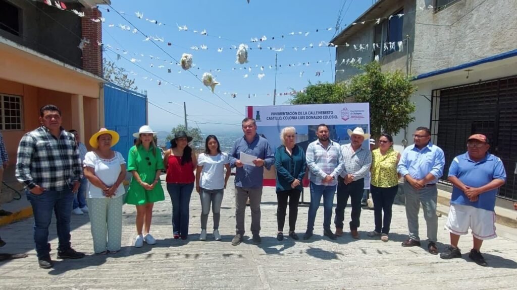 Por cuanto a la pavimentación entregada en la colonia Luis Donaldo Colosio, se realizó una obra por cooperación con los vecinos para construir con concreto hidráulico 396 metros cuadrado de la calle Heberto Castillo, asimismo se construyeron 61 metros cuadrados de banquetas, con una inversión de 135 mil pesos.