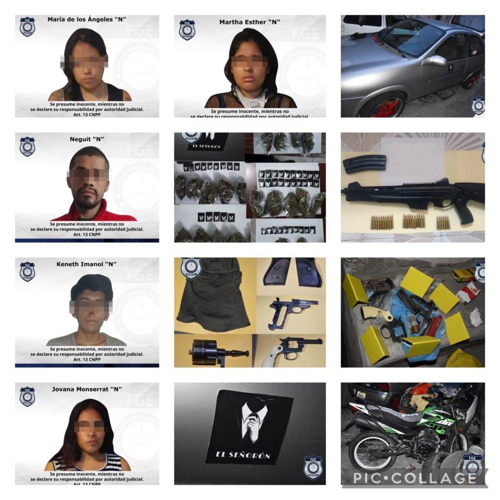 En los lugares de intervención, se realizó la detención de Neguit “N” alias “Alexander” de 32 años, Keneth Imanol “N” de 20 años, Jovana Montserrat “N” alias “La Veracruzana” de 21 años, Martha Esther “N” de 18 años y María de los Ángeles “N” de 30 años de edad, quienes fueron puestos a disposición del Ministerio Público de la Fiscalía Regional Sur Poniente.