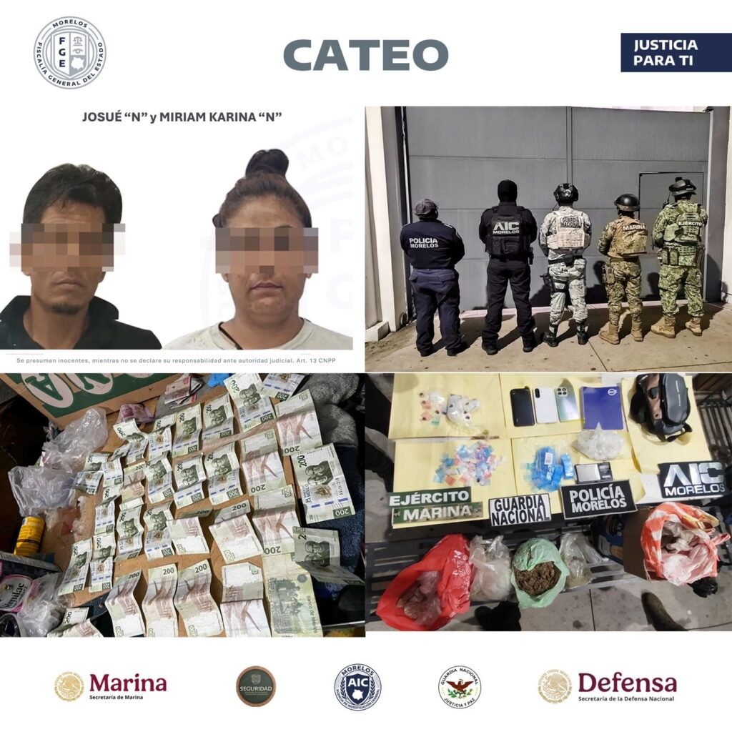 En cumplimiento a una orden de cateo, elementos de la Agencia de Investigación Criminal (AIC) de la Fiscalía Regional Oriente intervinieron un inmueble ubicado en el municipio de Cuautla, en donde, aparentemente, se distribuían narcóticos, además detuvieron a una pareja.