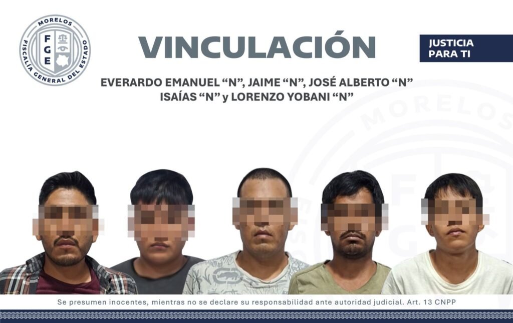 Ante ello, Jaime “N”, José Alberto “N”, Everardo Emanuel “N”, Isaías “N” y Lorenzo Yobani “N” fueron puestos a disposición del agente del Ministerio Público (MP) especializado, quien integró la carpeta de investigación.