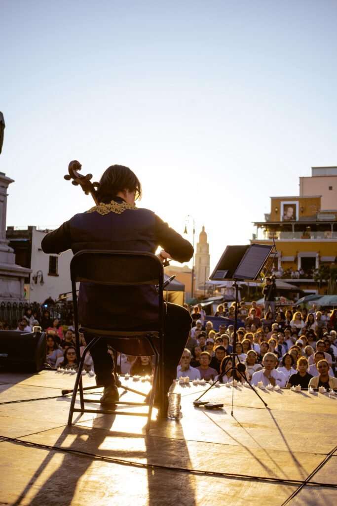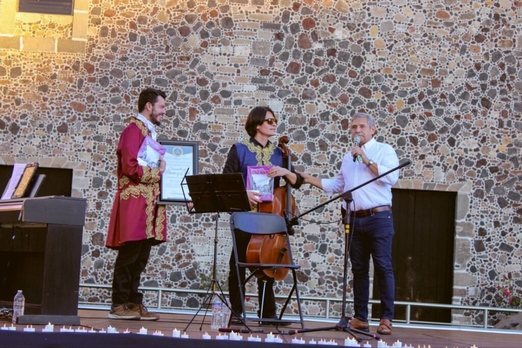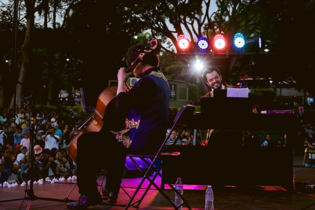 La velada musical estuvo a cargo del maestro Hebre Schiavon en el piano, concertista con amplia trayectoria artística y formador de proyectos incluyentes, y del maestro Orlando Espinoza en el violonchelo, intérprete con presentaciones en escenarios nacionales e internacionales. Ambos cuentan con formación en el Conservatorio Nacional de Música.