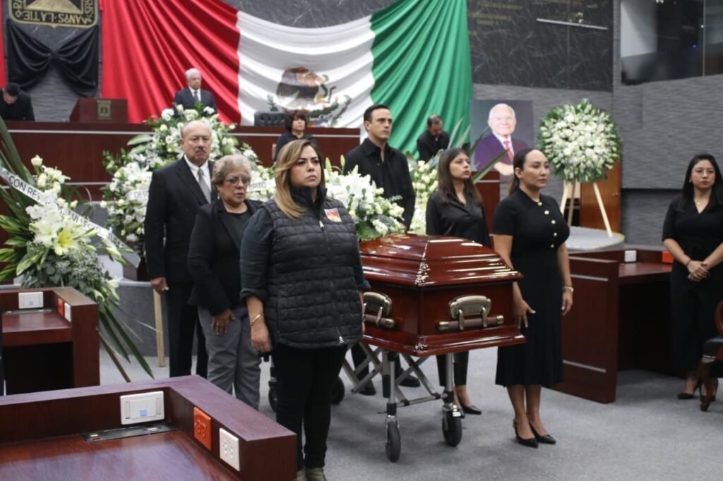 Como muestra del respeto a toda esa trayectoria, en el Salón de Plenos del recinto legislativo, legisladores locales y federales, así como funcionarios de los tres niveles de gobierno, montaron guardias de honor junto al féretro del destacado político.
