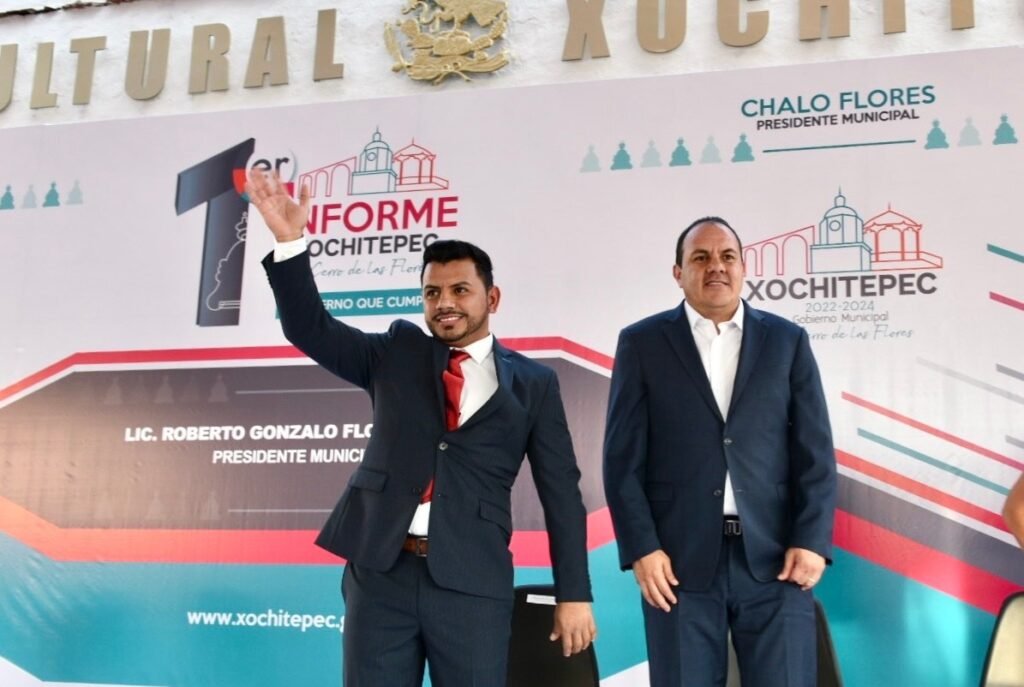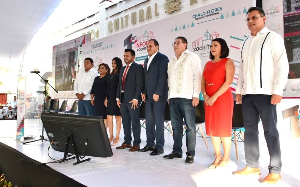 La tarde de este viernes, el gobernador Cuauhtémoc Blanco Bravo asistió al 1er Informe de Actividades del alcalde Roberto Gonzalo Flores Zúñiga, realizado en la Casa Cultural Xochitepequense.