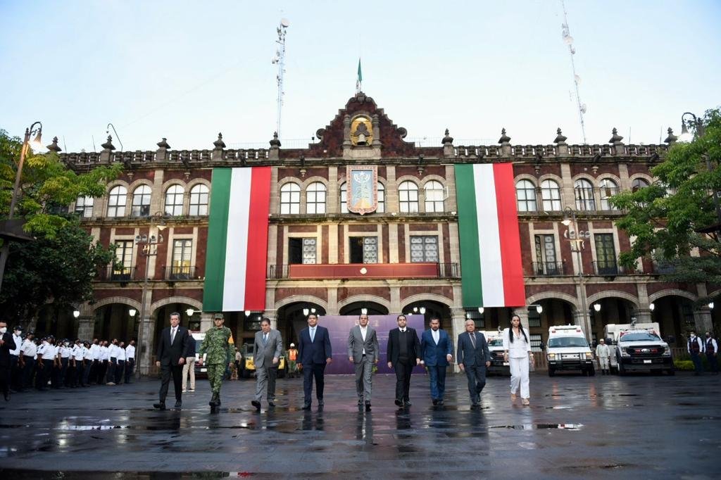 El gobernador Cuauhtémoc Blanco Bravo encabezó el izamiento de Bandera a media asta para recordar a las víctimas mortales de los sismos registrados el 19 de septiembre de 1985 y 2017, respectivamente.