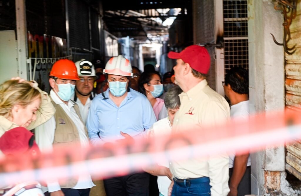 El jefe del Ejecutivo recorrió la nave afectada por un incendio y reafirmó su compromiso por mejorar la situación de las y los locatarios afectados