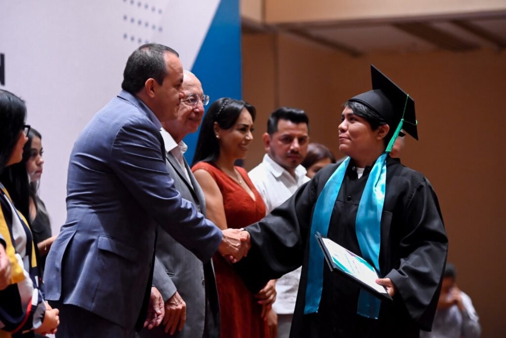 Durante el evento, realizado en el Centro de Congresos y Convenciones Morelos (CCCM), el jefe del Ejecutivo estatal señaló: “Nuestro reconocimiento por su tenacidad y constancia. A pesar de los retos que enfrentaron no bajaron los brazos, reconocemos su fortaleza para enfrentar cada obstáculo, sabemos que así van a superar los retos profesionales en el futuro”.