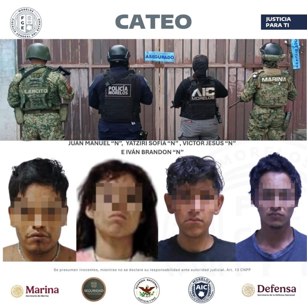 Los ahora aprehendidos responden a los nombres de Yatziri Sofía “N”, Juan Manuel “N”, Víctor Jesús “N” e Iván Brandon “N”.