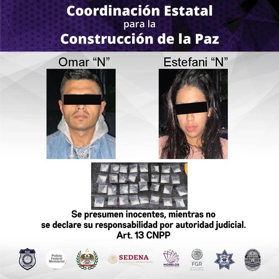 Por ello fueron detenidos Omar “N”, de 26 años de edad, y Estefani “N”, de 23 años de edad, quienes fueron presentado ante el agente del Ministerio Público, el cual determinará su situación jurídica.