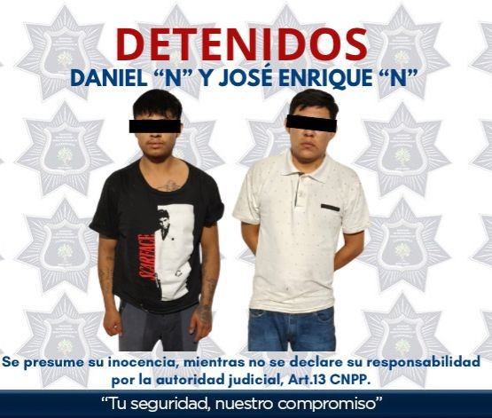 Luego de una persecución, durante la cual los responsables abandonaron la motocicleta CFMOTO 250, misma que fue asegurada, se logró la detención de Daniel “N” de 22 años y José Enrique “N” de 30 años quienes intentaron huir al interior de una barranca.