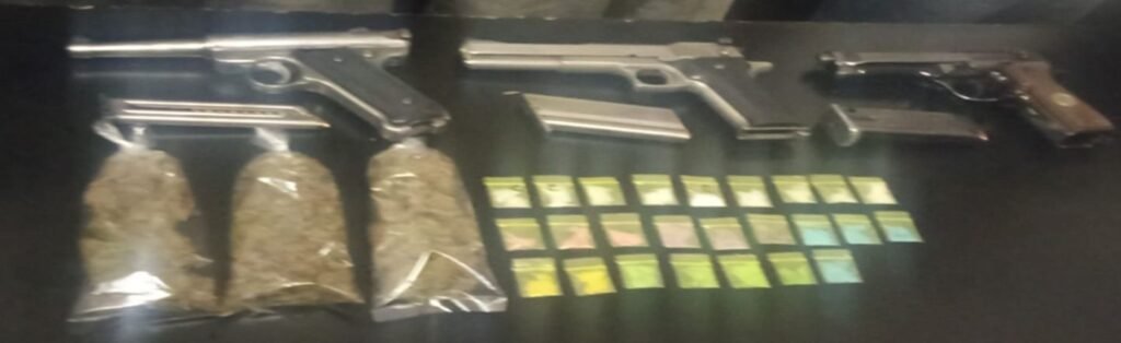 Se les aseguraron diversas dosis de sustancia similar a la metanfetamina, dosis con sustancia similar a la “cocaína”, un arma de fuego no oficial tipo pistola Glock, Cal. 9mm, con su cargador abastecido con cartuchos útiles de uso exclusivo de la Fuerzas Armadas, y un teléfono celular.