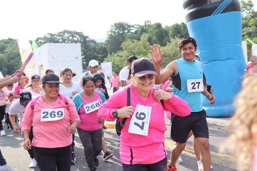 Vestidos con playeras rosas y blancas 350 competidores recorrieron dos circuitos: 600 metros y tres kilómetros, el primero para la niñez, adultos mayores y personas con discapacidad, el segundo para categoría abierta.