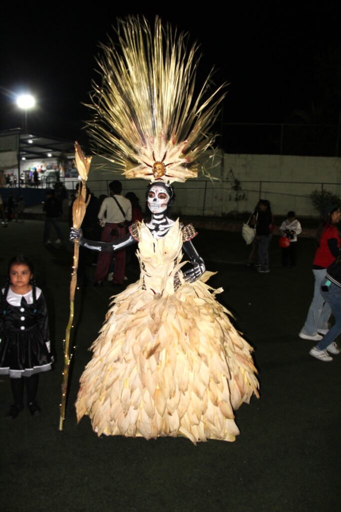 Durante la celebración, las y los asistentes disfrutaron de una taquiza comunitaria, la Caravana del Terror, y los concursos de ofrendas, disfraces y catrinas de cartonería, donde se destacó el talento y la creatividad de la comunidad.