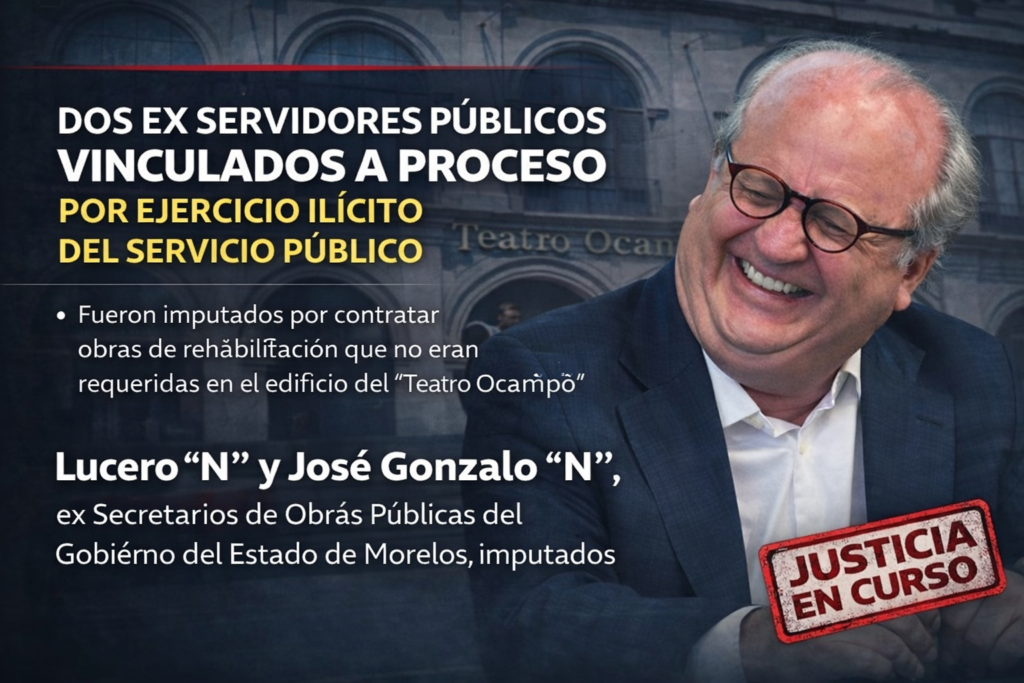 La FECC imputó a ambos ex funcionarios de la entonces Secretaría de Obras Públicas del Gobierno del Estado durante el período 2012-2018, el delito de ejercicio ilícito del servicio público por contratar por adjudicación directa a una empresa para efectuar obras de rehabilitación del edificio del “Teatro Ocampo”, a pesar de que dicho inmueble no requería intervención ya que no presentaba afectaciones en su estructura.