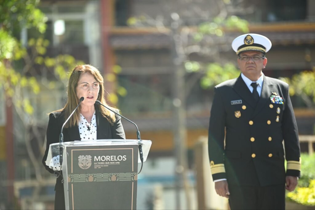 La gobernadora Margarita González Saravia encabezó el abanderamiento de 26 escoltas de escuelas de nivel básico y medio superior en la Plaza General Emiliano Zapata Salazar, en coordinación con el acto nacional realizado por el Gobierno de México.