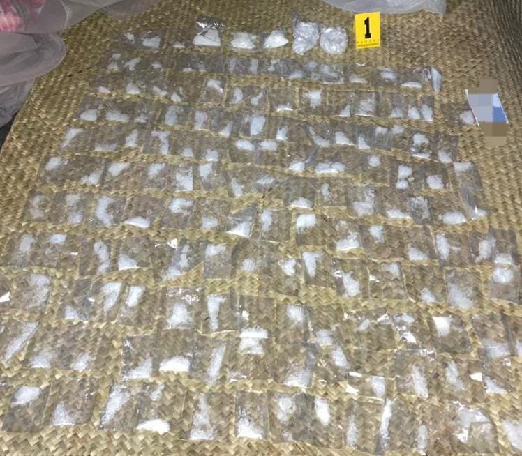 Al desahogar dicha diligencia, los elementos de la PFM, con el apoyo de peritos, localizaron un arma de fuego tipo escopeta, 18 cartuchos de diversos calibres,12 bolsitas con marihuana, así como 222 bolsitas, 227 envoltorios y 84 dosis aproximadamente de metanfetamina (cystal), además de que se detuvo a tres personas.