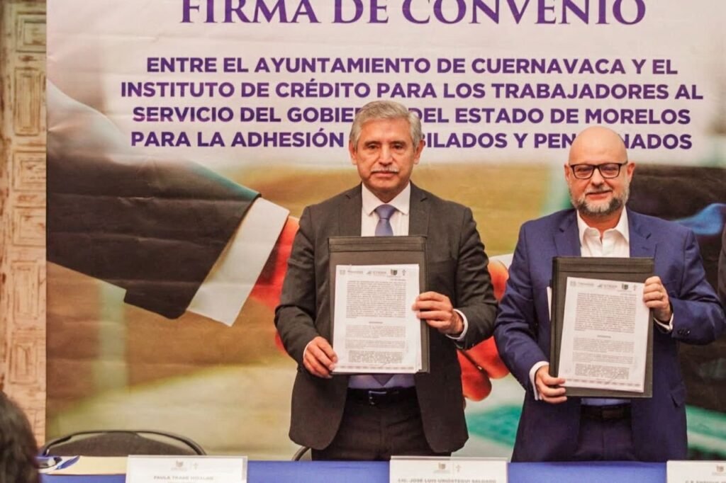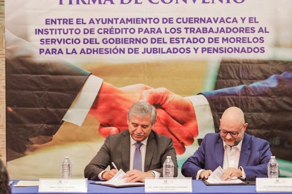 En un hecho que marca un avance significativo en materia de justicia laboral y reconocimiento a quienes dedicaron su vida al servicio público, el Ayuntamiento de Cuernavaca encabezado por el alcalde José Luis Urióstegui Salgado, firmó este lunes un convenio de incorporación con el Instituto de Crédito para los Trabajadores al Servicio del Gobierno del Estado de Morelos (ICTSGEM), que permitirá integrar formalmente a pensionados y jubilados municipales al sistema de beneficios y apoyos financieros del organismo.