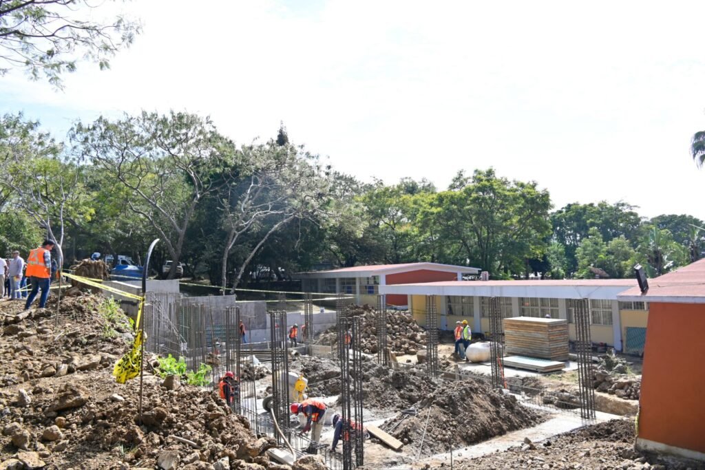 En la comunidad de Ixcatepec, constató los avances en la construcción de aulas, un muro de contención y una rampa de acceso en el Centro de Atención Múltiple Número 9, con una inversión superior a 2.5 millones de pesos.