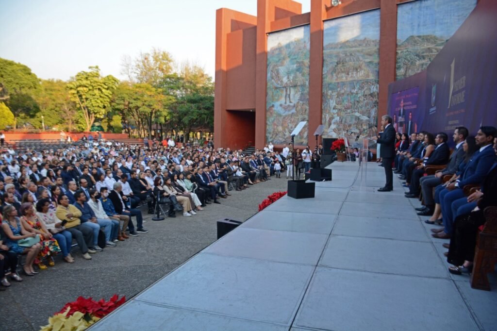 Acompañado de integrantes del cuerpo edilicio y representantes de los poderes del estado, afirmó que en tan solo un año se logró el rescate de espacios públicos con distintas actividades artísticas y culturales, como la recuperación de la Feria de la Flor y las Callejoneadas en el Centro Histórico, así como la organización de eventos sin precedentes, desde el Fin de Semana en Cuernavaca y el Festival Cultural de Verano que se ha compaginado con el embellecimiento de camellones y parques con obras de artistas plásticos que han sido donadas para poder mostrar en espacios públicos, resaltando la ciudad con historia, arquitectura, arte y cultura.