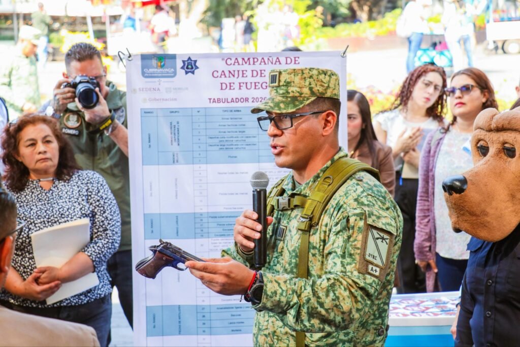 A través del Programa de Canje de Armas de Fuego 2026, que se desarrollará durante una semana en Cuernavaca, la ciudadanía podrá entregar de manera anónima armas de fuego, cartuchos y explosivos a cambio de dinero en efectivo, con el objetivo de disminuir la presencia de armamento en los hogares y fomentar la cultura de paz. Para fortalecer esta estrategia, el Cabildo de Cuernavaca destinó hasta 200 mil pesos, recursos que facilitarán la participación de la población.