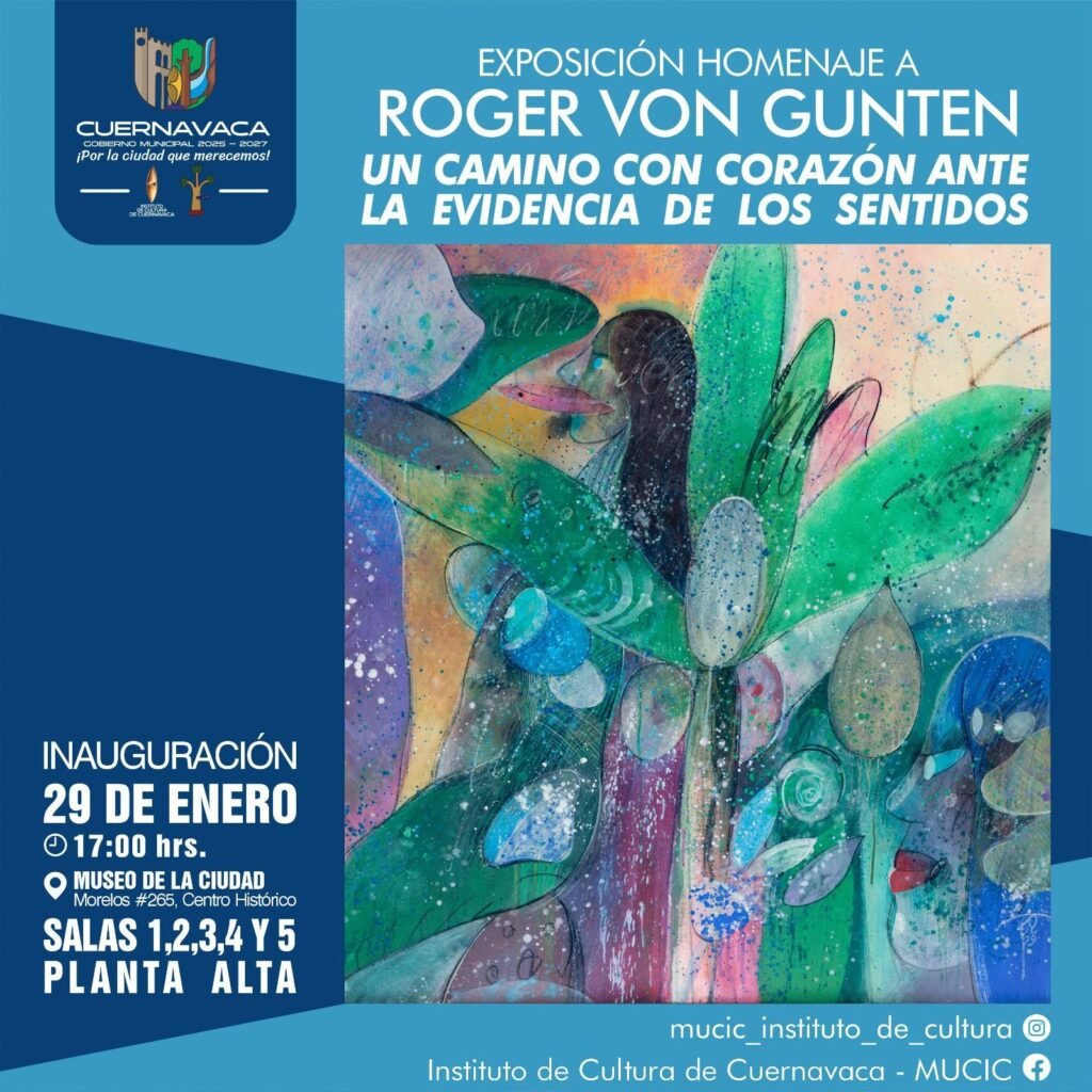 La Secretaría de Desarrollo Humano y Participación Social (SDHyPS), a través del Instituto de Cultura de Cuernavaca, invita al público a la inauguración de la exposición Homenaje a Roger von Gunten: Un camino con corazón ante la evidencia de los sentidos, que se llevará a cabo este jueves 29 de enero a las 17:00 horas en el Museo de la Ciudad de Cuernavaca (MuCiC).