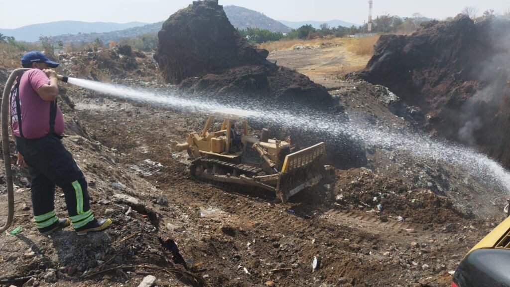 2.-Controlado el incendio, la Dirección de Protección Civil y Rescate de Jiutepec con el apoyo del Centro de Control de Emergencia de Civac de manera permanente lleva a cabo acciones para sofocar el siniestro, entre las que se encuentran: el uso maquinaria (pipas, retroexcavadoras, trascabo) para humedecer la tierra y removerla e ir apagando las brasas y los puntos calientes que producen humo, esto se detecta a partir de una cámara calorífica.