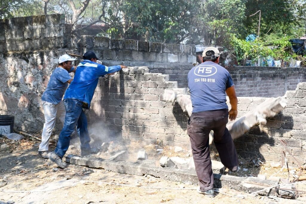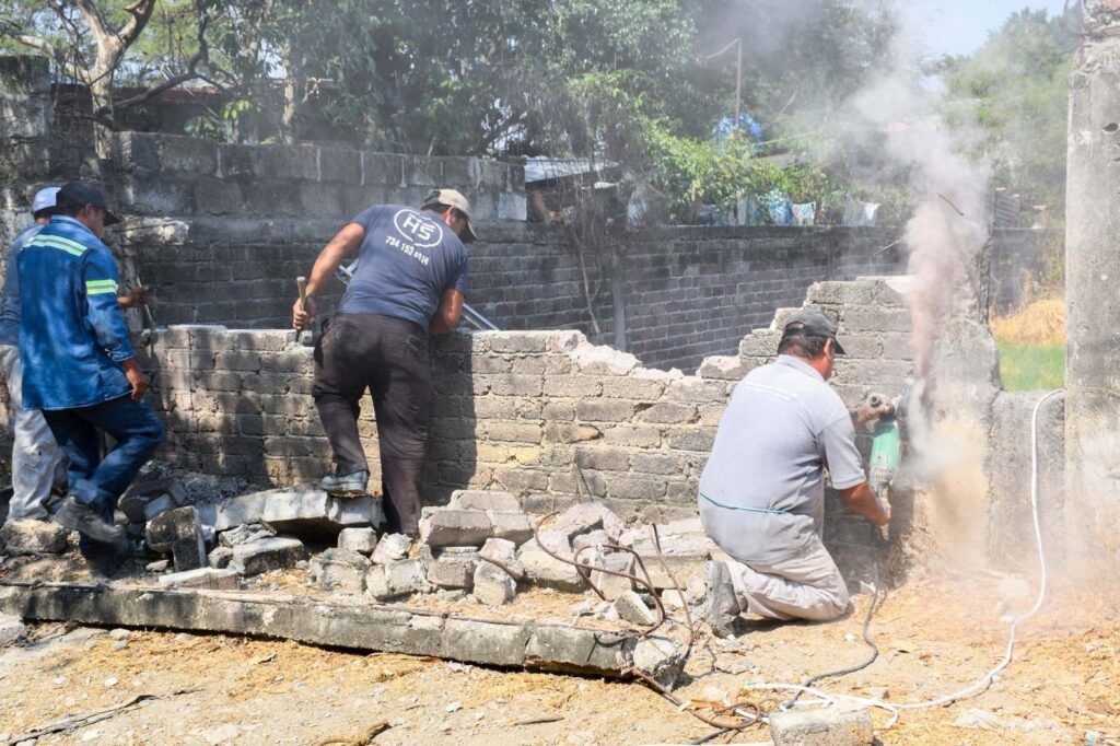 Las actividades iniciaron este lunes por la mañana con el retiro de una carpa y posteriormente se dio paso al derribo de una barda perimetral que estaba a punto de colapsar pues significa un riesgo para la labor de los peritos y especialistas de Fiscalía Morelos, así como de otras dependencias.