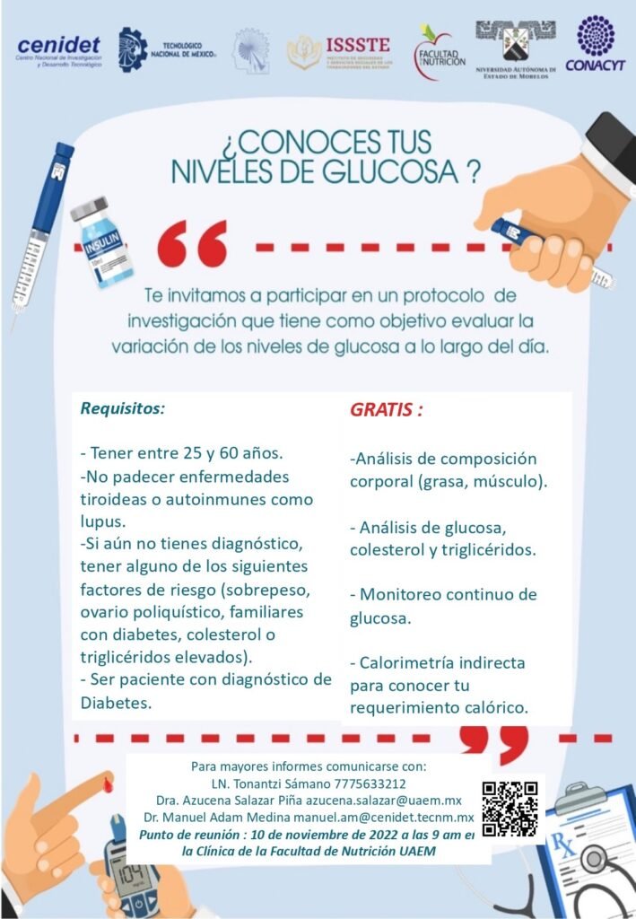 A partir de este 10 de noviembre, la Facultad de Nutrición de la Universidad Autónoma del Estado de Morelos (UAEM), inicia un protocolo de investigación para evaluar variaciones en los niveles de glucosa en un grupo de la población y generar un software que mida si hay riesgo de diabetes, de tal forma que se pueda prevenir esta enfermedad a futuro o ayudar a quienes ya la padecen.