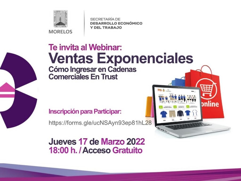 La Secretaría de Desarrollo Económico y del Trabajo (SDEyT), por medio de la Dirección General de Orgullo Morelos, en coordinación con la empresa enTrust by Moonshot Labs, ofrecerá la capacitación en línea gratuita denominada “Ventas Exponenciales”.