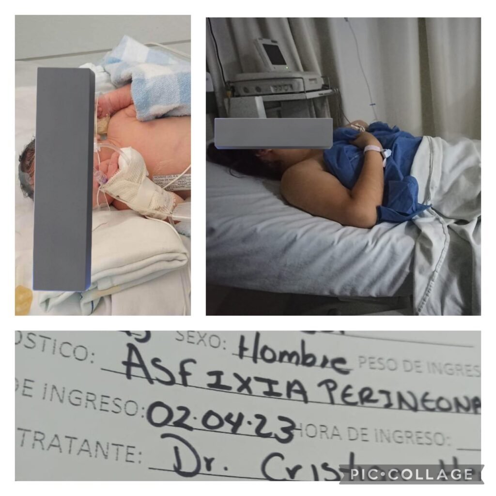 El recién nacido tuvo sufrimiento fetal y se le diagnosticó asfixia perineonatal, por lo que fue ingresado a la Unidad de Cuidados Intensivos del nosocomio; ella presentó una hemorragia que incluso la dejó inconsciente, pero mientras el personal mantenía en la incertidumbre a su familia.