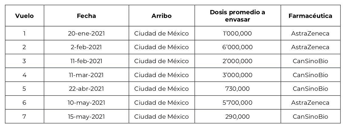México recibió 585 mil vacunas envasadas contra COVID-19 de la farmacéutica