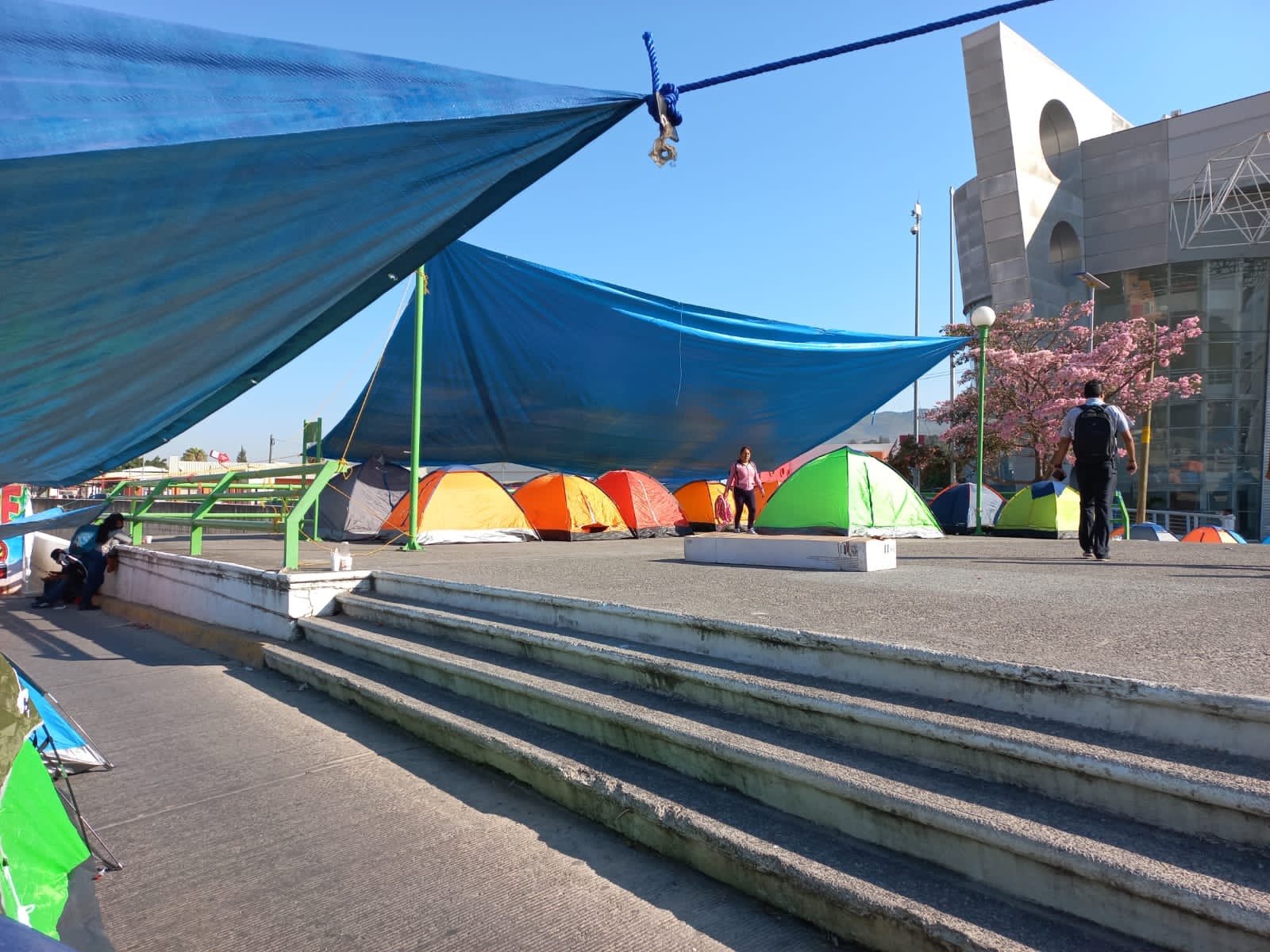 Los manifestantes se instalaron con casas de campaña frente al acceso principal de ese edificio por lo que no hay circulación vial en ese boulevard, y lamentaron que no haya interés por parte de la gobernadora Evelyn Salgado Pineda para solucionar la problemática de los docentes, por lo que anunciaron que seguirán movilizándose hasta que sean atendidos y les den respuestas positivas a sus demandas.