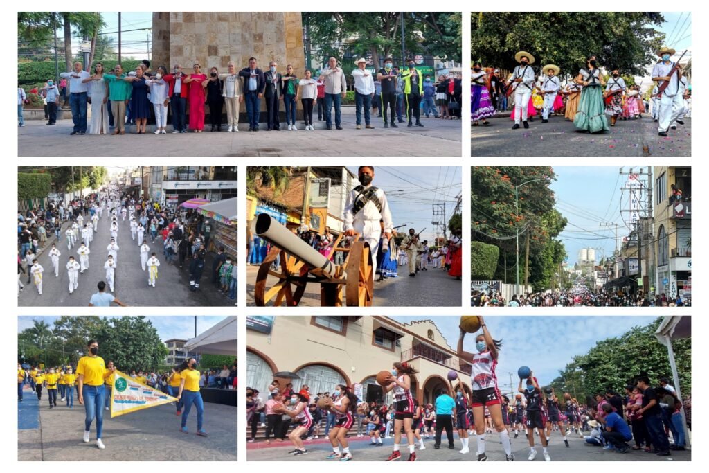 Posteriormente, ante la presencia de cientos de familias, 31 contingentes de estudiantes (15 de escuelas primarias, 10 de secundarias, 4 de educación media superior y dos del nivel superior) desfilaron del cruce entre las avenidas Par Vial Lázaro Cárdenas e Insurgentes al zócalo del municipio.