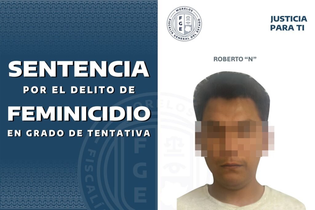 La Fiscalía General del Estado (FGE) de Morelos obtuvo una sentencia de 26 años, ocho meses y 20 días de prisión en contra de Roberto “N”, hallado penalmente responsable de la comisión del delito de feminicidio en grado de tentativa, en hechos suscitados en el municipio de Yautepec.