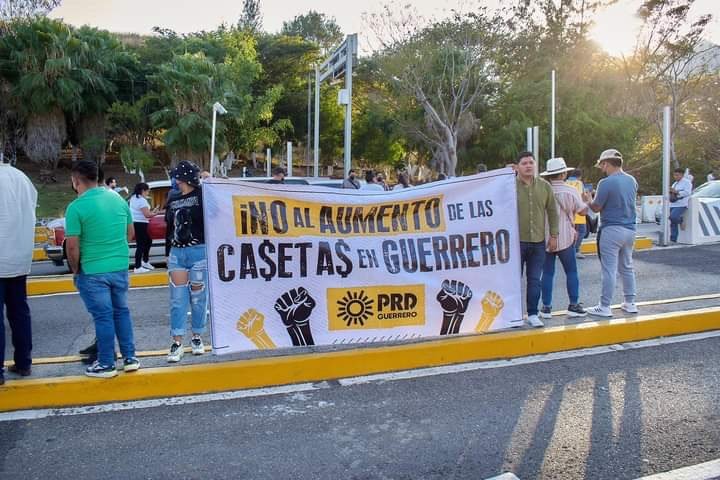 Los perredistas portaron cartulinas con textos dirigidos al gobierno federal, en los que recriminaron el incremento al costo de las casetas, por considerar que afectan de manera severa la actividad comercial y turística de la entidad, lo que lacera la economía de los guerrerenses en general.