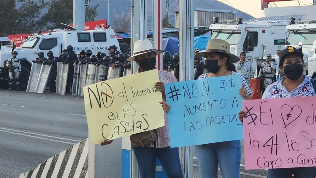 Cerca de los perredistas, se instalaron elementos de la Guardia Nacional (GN) con equipo antimotín, en tanto que a los costados de la Autopista se desplegaron elementos de la policía estatal, también con escudos de plástico, con la instrucción de realizar un repliegue en caso de que los manifestantes pretendieran tomar las casetas de cobro de peaje.