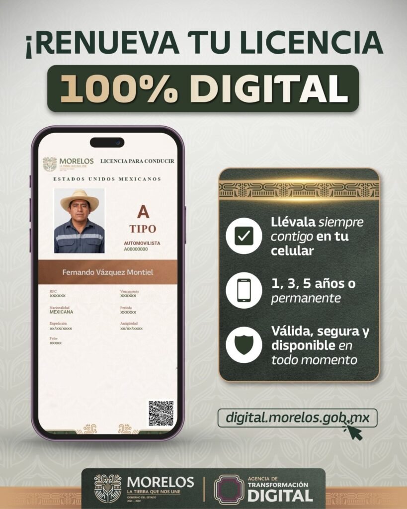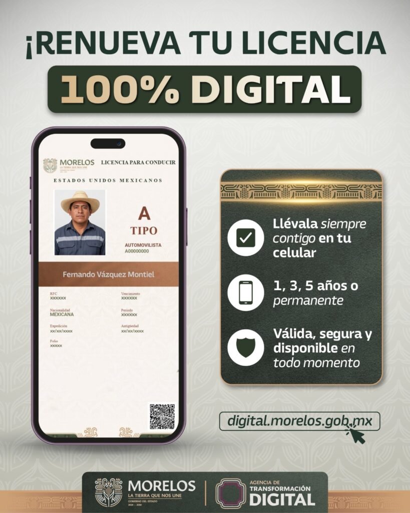 La renovación de la licencia de conducir en línea a través de digital.morelos.gob.mx permite a la ciudadanía ahorrar tiempo, reducir costos de traslado y evitar aglomeraciones, lo que brinda un servicio más eficiente, accesible y centrado en las personas.