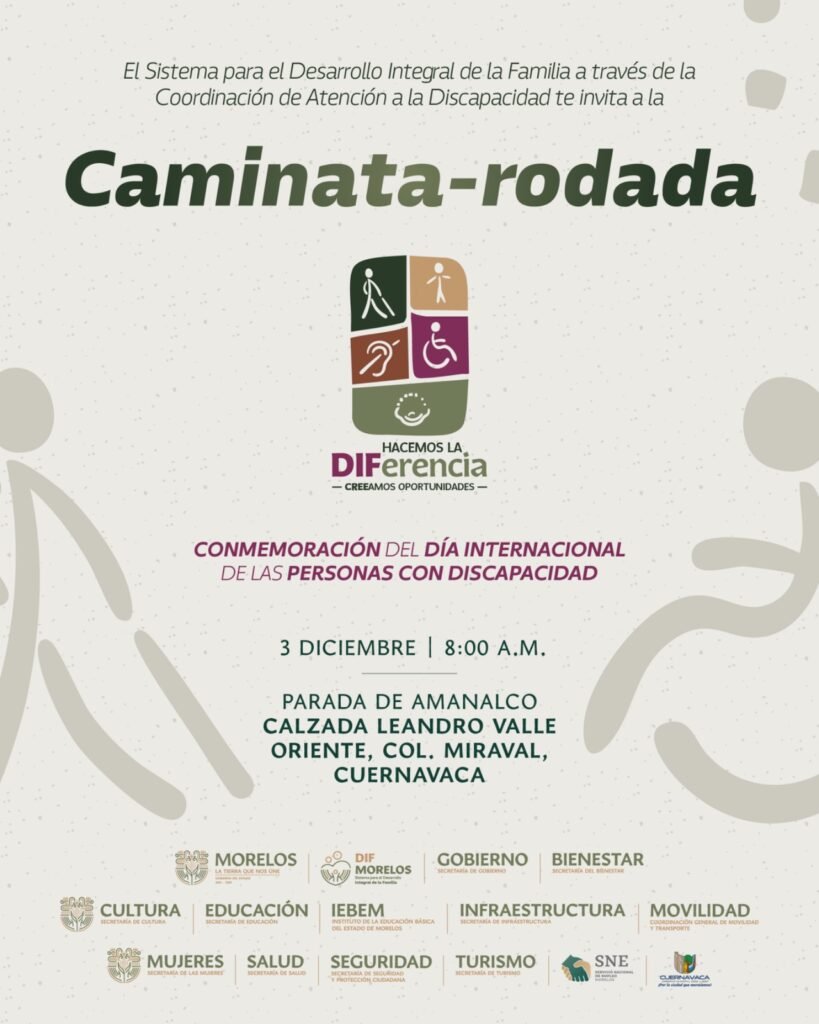 La jornada iniciará a las 08:00 horas con una caminata-rodada incluyente que partirá desde la Glorieta de la parada Amanalco hacia la “Plaza General Emiliano Zapata Salazar”, en Cuernavaca, donde niñas, niños, jóvenes, personas adultas y familias podrán sumarse para visibilizar la importancia de la inclusión, accesibilidad y construcción de entornos más justos.