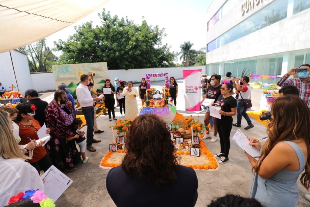 Enmarcada por las 12 ofrendas participantes, la presidenta de la Comisión de Educación y Cultura, rindió tributo “a todas aquellas familias que ha perdido un ser querido a causa de la pandemia de COVID-19, por la que atraviesa nuestro país”.
