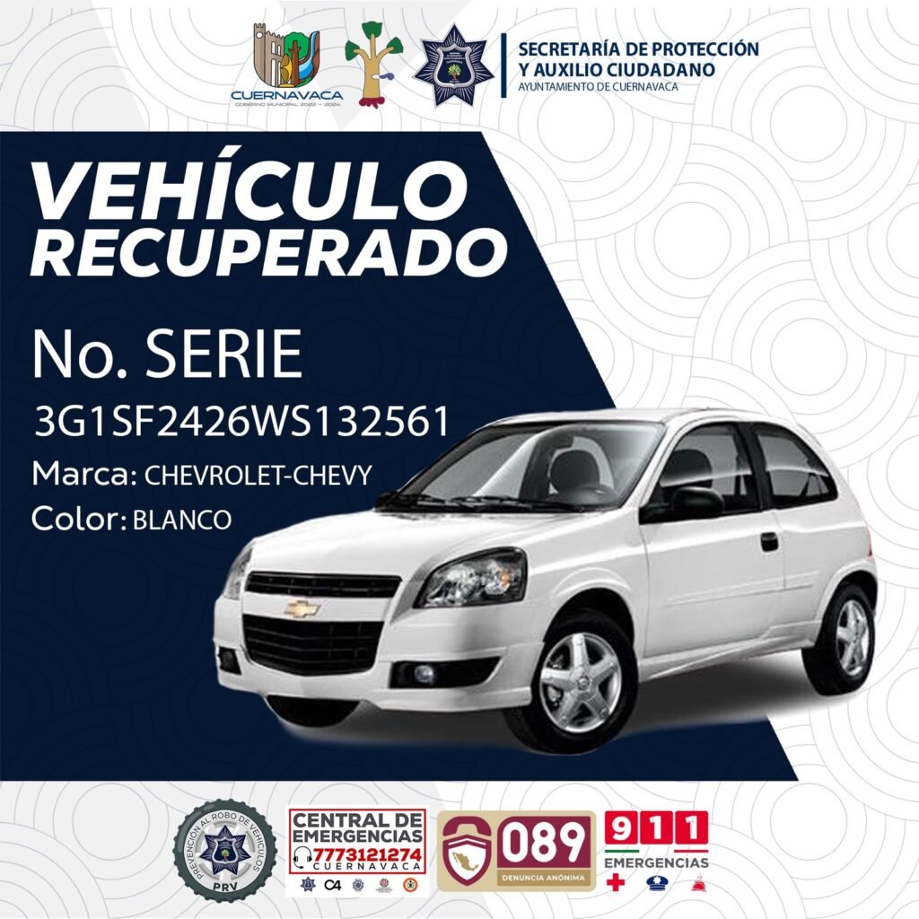 La titular de Protección y Auxilio Ciudadano (SEPRAC) de Cuernavaca, Alicia Vázquez Luna, informó que durante enero y febrero de este 2023, se logró la recuperación de 27 automotores que presentaron irregularidades en medios de identificación y contaban con reportes de robo.