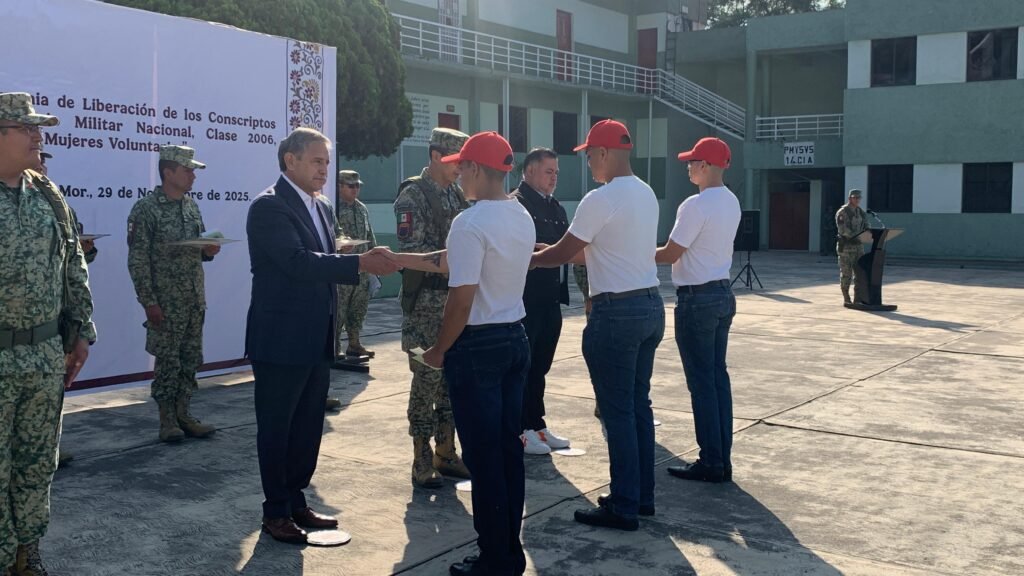 El presidente municipal de Cuernavaca, José Luis Urióstegui Salgado, participó este sábado en la ceremonia de liberación de los conscriptos del Servicio Militar Nacional (SMN) clase 2006, remisos y mujeres voluntarias, realizada en las instalaciones del 21/o. Batallón de Infantería. El acto reunió a autoridades civiles y militares, así como a madres y padres de familia para concluir de manera oficial el adiestramiento que los jóvenes realizaron durante este año.