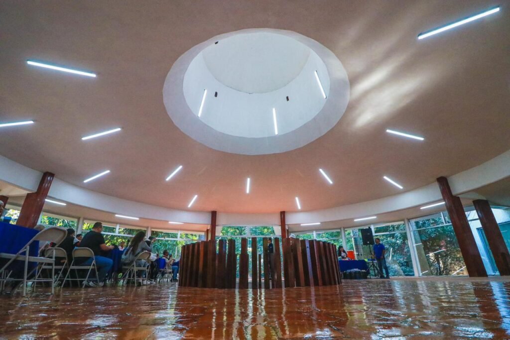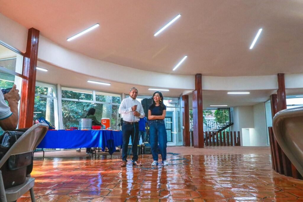 La rehabilitación no sólo recupera un inmueble, sino que transforma la biblioteca en un centro cultural vivo se impermeabilizó todo el espacio tras años sin mantenimiento, se reemplazó la cancelería y la cristalería por vidrio templado para mejorar la seguridad, se renovaron sanitarios, instalación eléctrica, pintura y acabados; además de que por las noches la nueva iluminación escénica da vida al parque, ofreciendo un entorno renovado y seguro para las familias.