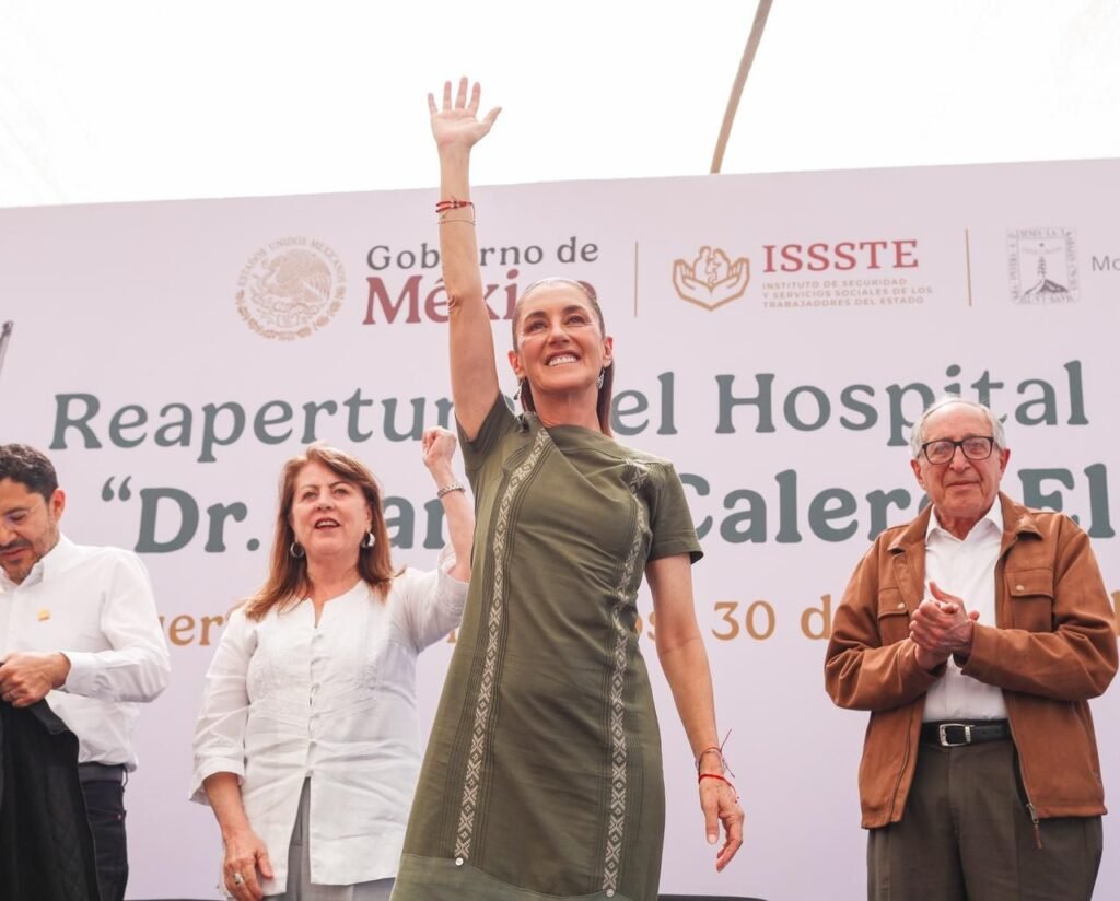 La gobernadora Margarita González Saravia y la presidenta de México, Claudia Sheinbaum Pardo, encabezaron la reapertura del Hospital General “Dr. Carlos Calero Elorduy” del Instituto de Seguridad y Servicios Sociales de los Trabajadores del Estado (ISSSTE), ubicado en Cuernavaca, con lo cual se amplía la atención médica y de especialidades para cientos de derechohabientes