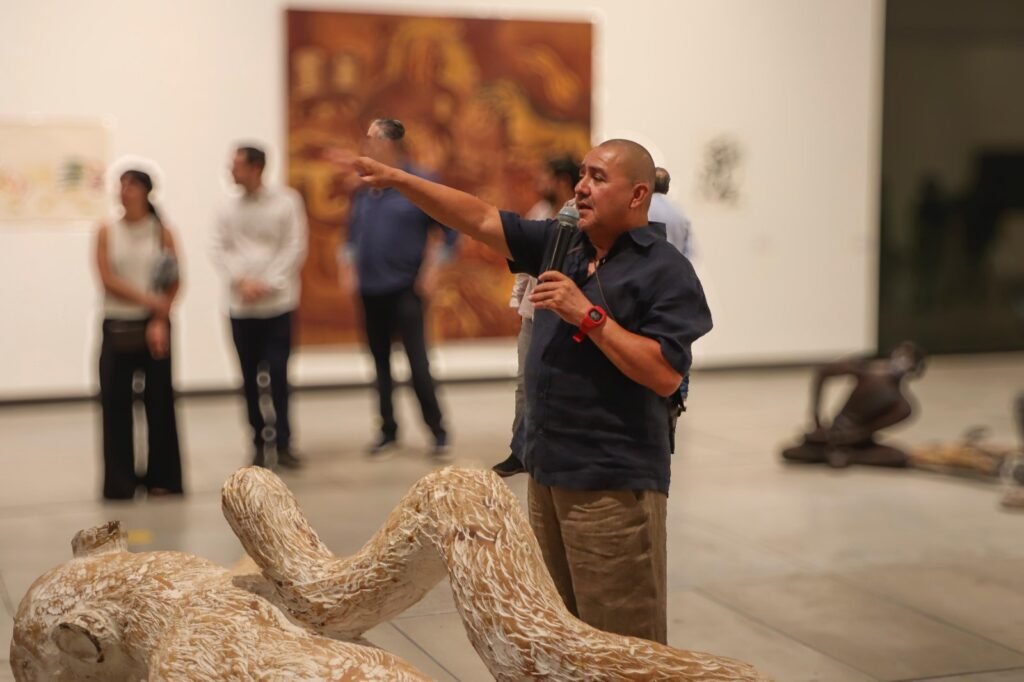 Durante el evento, se explicó que las piezas seleccionadas para esta muestra, buscan subrayar características y aspectos constantes en su producción como sus soluciones gestuales y expresionistas, así como la manera en la que emplea y actualiza técnicas tradicionales, como la talla y el estucado, oficio en el que inició como ayudante de ebanista.