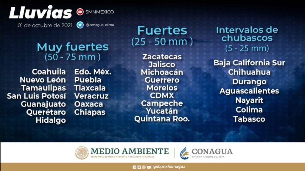 Inicia el primer fin de semana del mes de octubre y la Comisión Estatal del Agua (Ceagua) informa que se prevén nublados, tiempo lluvioso, ambiente cálido en el día y fresco hacia la madrugada.